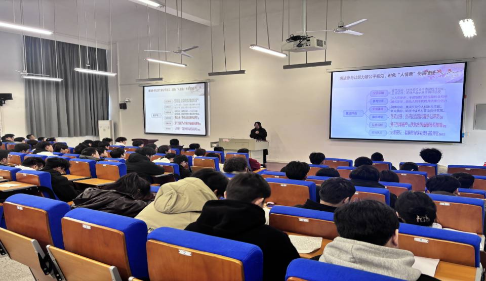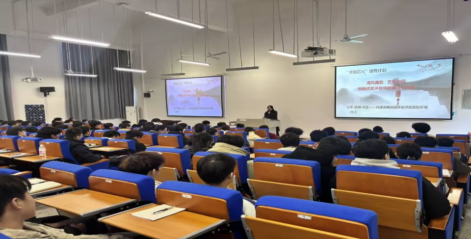 2025年11月19日,艾弗森贝博ballbet官网在北教201教室成功举办“清风润班”廉洁小课堂活动。本次活动由学管团队精心组织,陈宇老师作为课堂主讲人和各班级学生代表共同围绕评奖评优工作中的廉洁建设展开深入交流,为营造清朗、透明、温暖的班级氛围注入新动力。