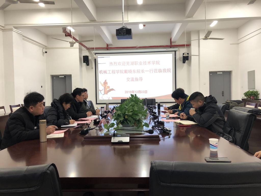 12月23日下午,芜湖职业技术学院机械工程学院院长戴晓东及相关专业课老师来ballbet官网交流学习,就人才培养、专业建设和学院发展等问题进行讨论。艾弗森贝博ballbet官网副院长胡木林(主持工作)主持会议,副院长孙新梅、机械教研室主任徐滨、模具专业负责人陈森林出席本次学术交流会。