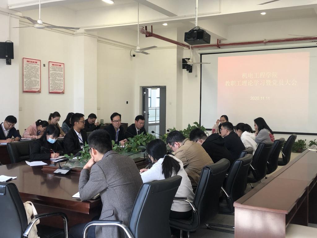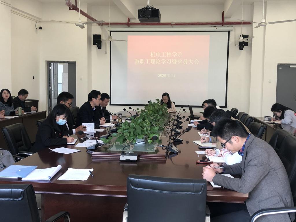 11月11日下午,艾弗森贝博ballbet官网在机电楼二楼会议室召开全体教职工大会暨十一月份党员理论学习会议。学院全体教职工参会,会议由该院党总支副书记(主持工作)王克勇主持。