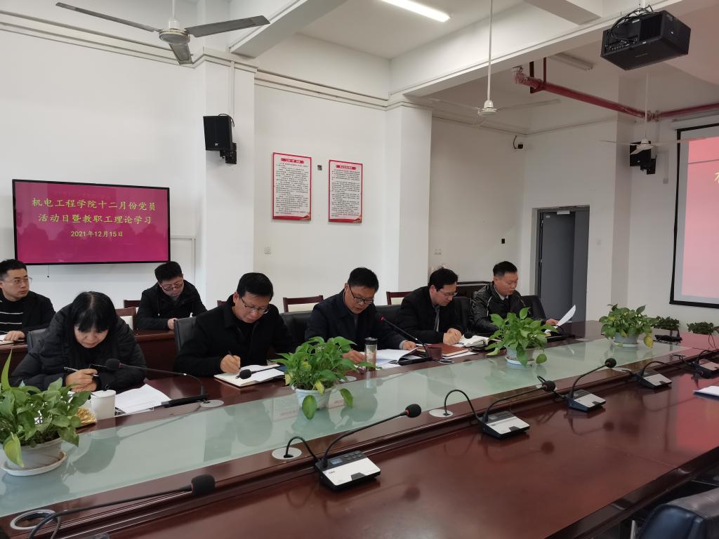 12月15日下午,艾弗森贝博ballbet官网在机电楼二楼会议室召开十二月份主题党日暨教职工理论学习。校党委委员、办公室主任王海及学院全体教职工参加会议,会议由该院党总支副书记(主持工作)王克勇主持。