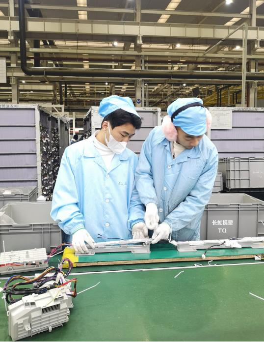 此次活动得到了合肥海尔滚筒洗衣机有限公司的大力支持,学生分两批进驻工厂生产线,他们带上手套,穿上防护服,亲身参与到生产之中,分散在不同的岗位,与海尔员工一起工作、交流。虽然劳动的过程是辛苦的,但是看着一台台洗衣机下线,即将走到千家万户,同学们的自豪感洋溢在脸上。