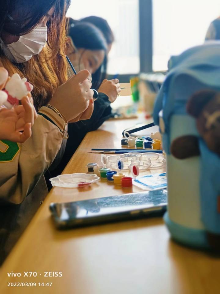 活动前期,学院用3D打印技术打印活动所需要的冰墩墩。如此可爱的冰墩墩,谁不想拥有呢!活动还没有开始,女生们早已经来到,志愿者也早已经把冰墩墩,颜料,画板,围裙等准备好。活动开始女生们都忙着为自己的冰墩墩画成自己心意的样子,看着她们认真小心的画着。活动结束,同学们互相看着各自画的冰墩墩,整个教室充满了笑声。