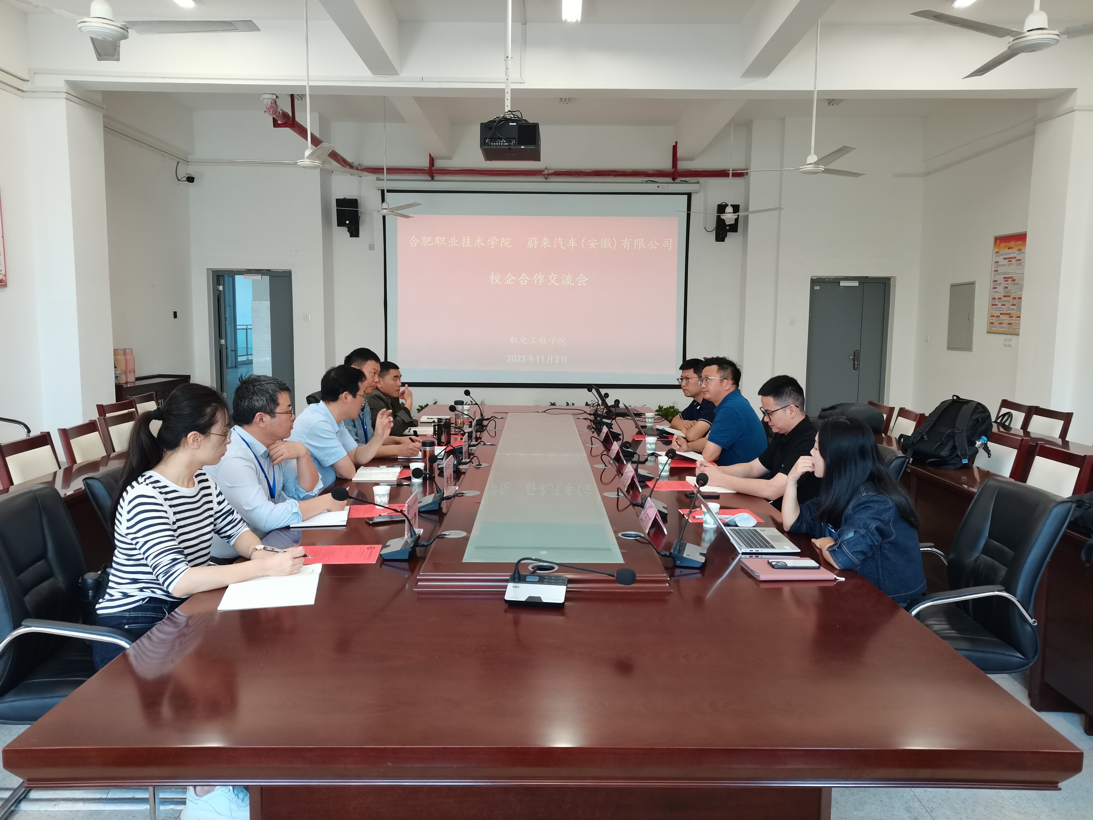 为进一步加强校企合作,深化产教融合,落实技能型人才双主体培养,11月2日上午蔚来汽车(安徽)有限公司工业化校企合作负责人朱肖烈、工业化招聘中台招聘HR何张强、技能培训工程师高宁、F2工厂HRBP杜林林一行四人来访艾弗森贝博ballbet官网,艾弗森贝博ballbet官网党政领导班子成员及机电一体化相关专业负责人参加此次对接。