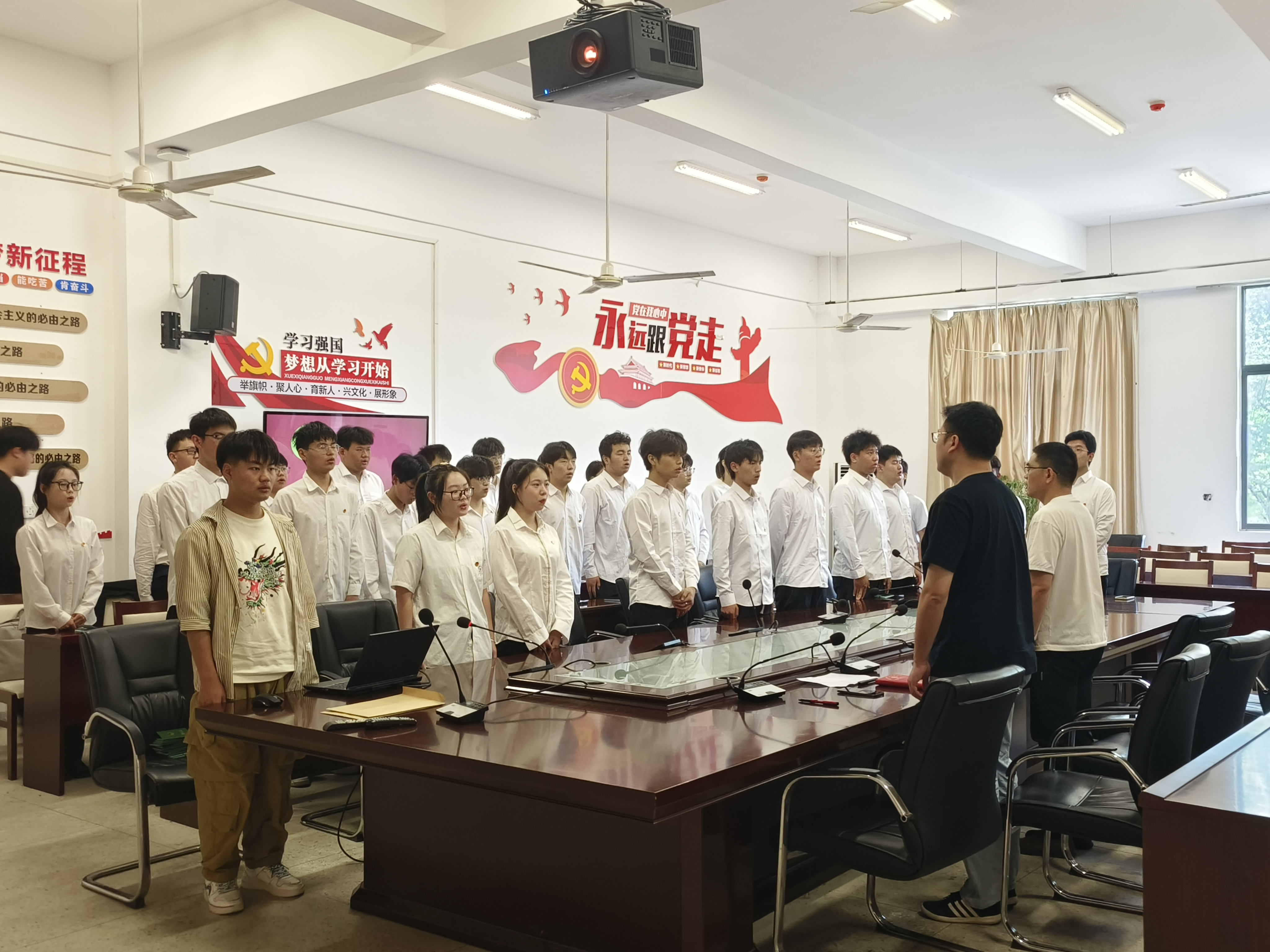 为深入学习贯彻党的二十大精神,进一步传承和弘扬五四精神,强化共青团仪式教育,引导广大团员青年坚定理想信念、凝心聚力、砥砺奋进,增进强国复兴的光荣感和使命感,6月13日下午,艾弗森贝博ballbet官网团总支在机电楼203会议室举行2024年新团员入团仪式。学院党总支副书记宋忠春,团总支书记张开及30名新老团员参加本次仪式。