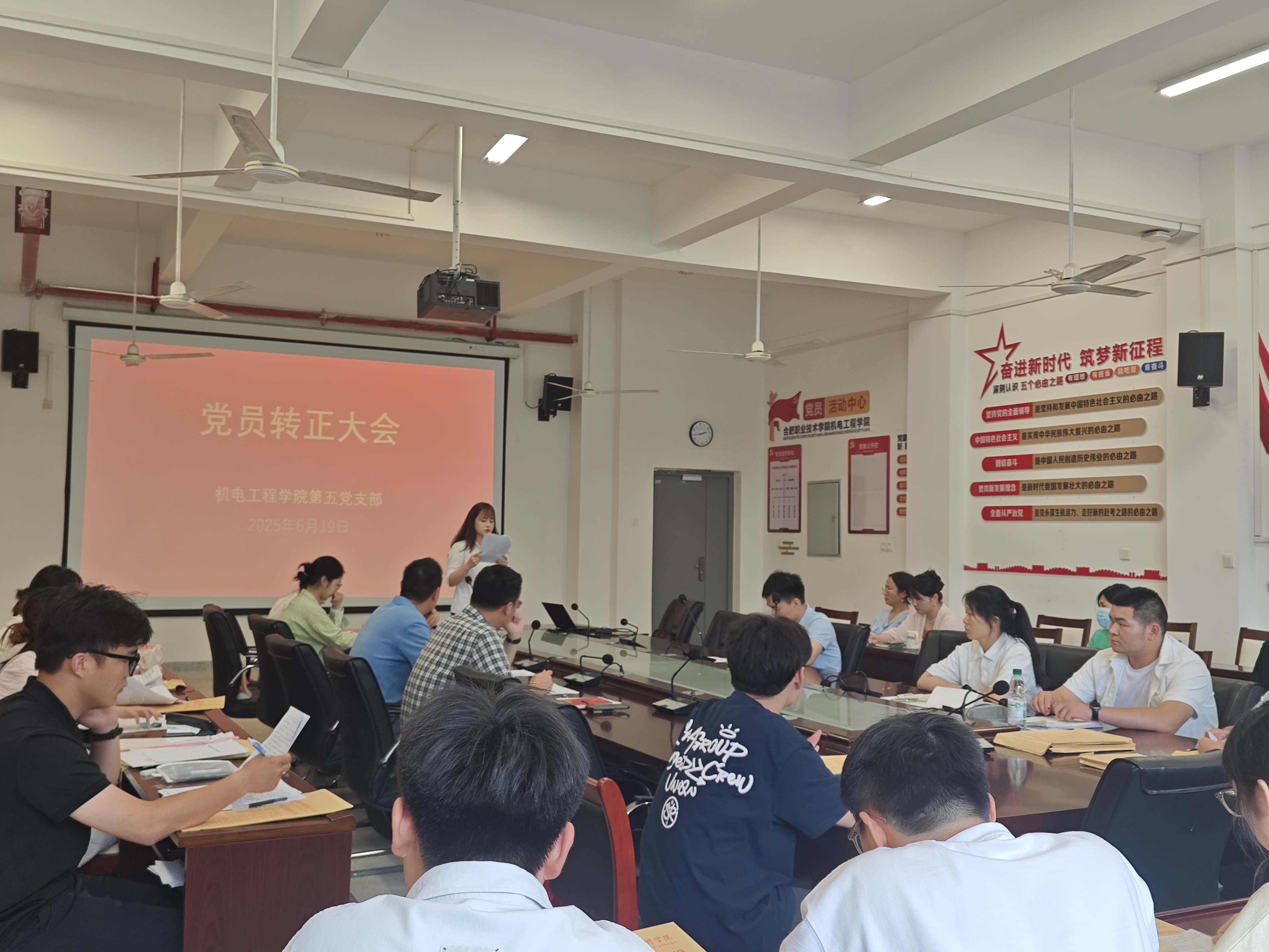 6月19日下午,艾弗森贝博ballbet官网第五党支部在机电楼二楼会议室召开预备党员转正大会。此次会议由学院第五党支部书记张开主持,支部全体党员同志及各入党介绍人参加。