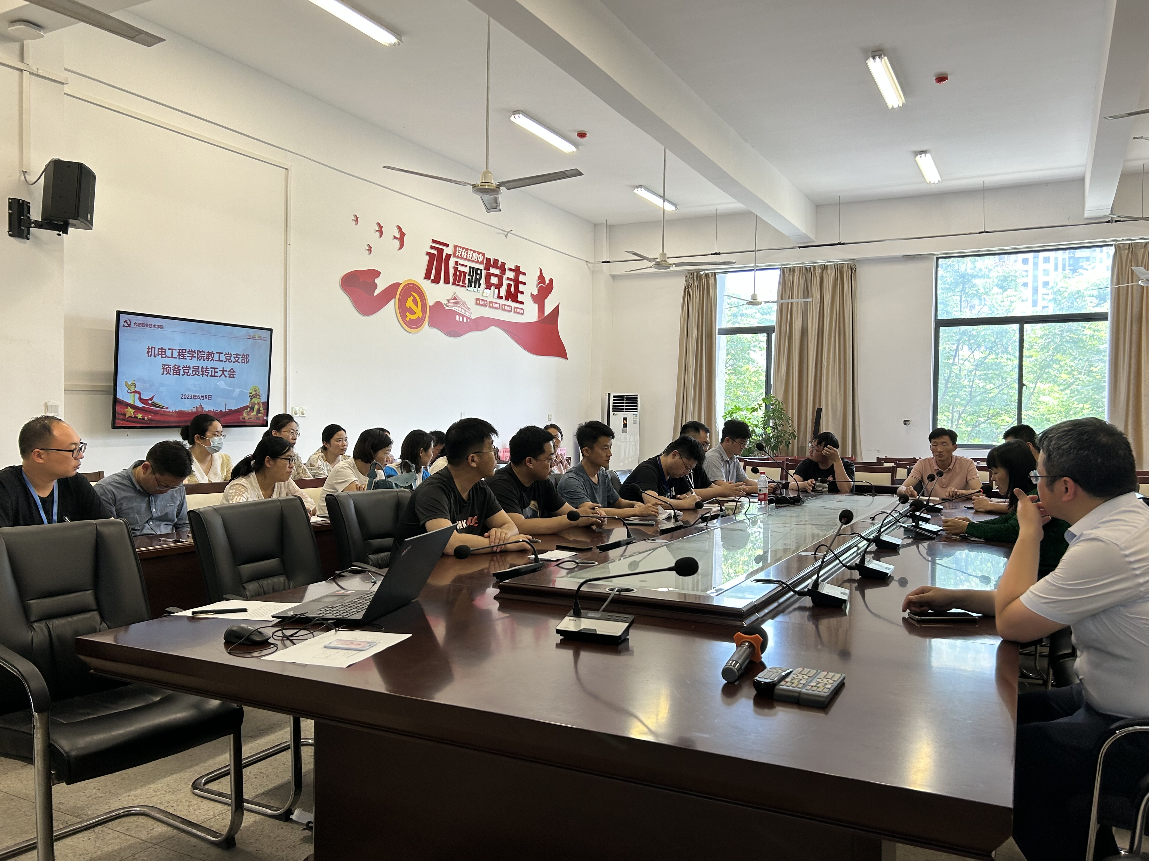 6月8日下午,艾弗森贝博ballbet官网教工党支部于机电楼二楼会议室召开预备党员转正会议,就预备党员罗家浒、徐敏同志的转正事宜进行讨论,会议由教工党支部书记孙新梅同志主持。