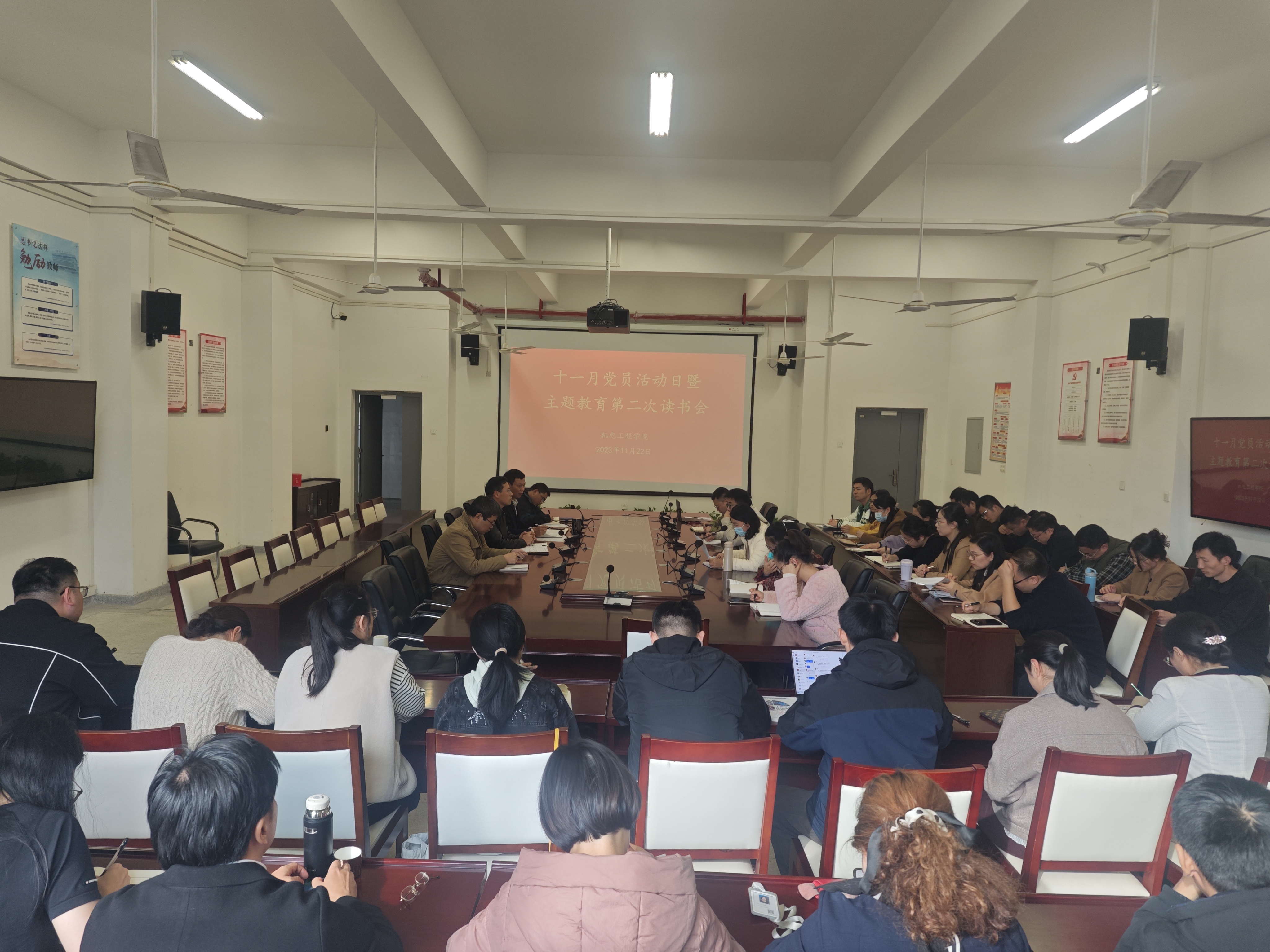 11月22日下午,艾弗森贝博ballbet官网在机电楼二楼会议室组织召开十一月份党员活动日暨主题教育第二次读书会,学院全体教职工参加,会议由该院党总支副书记(主持工作)丁迎春主持。