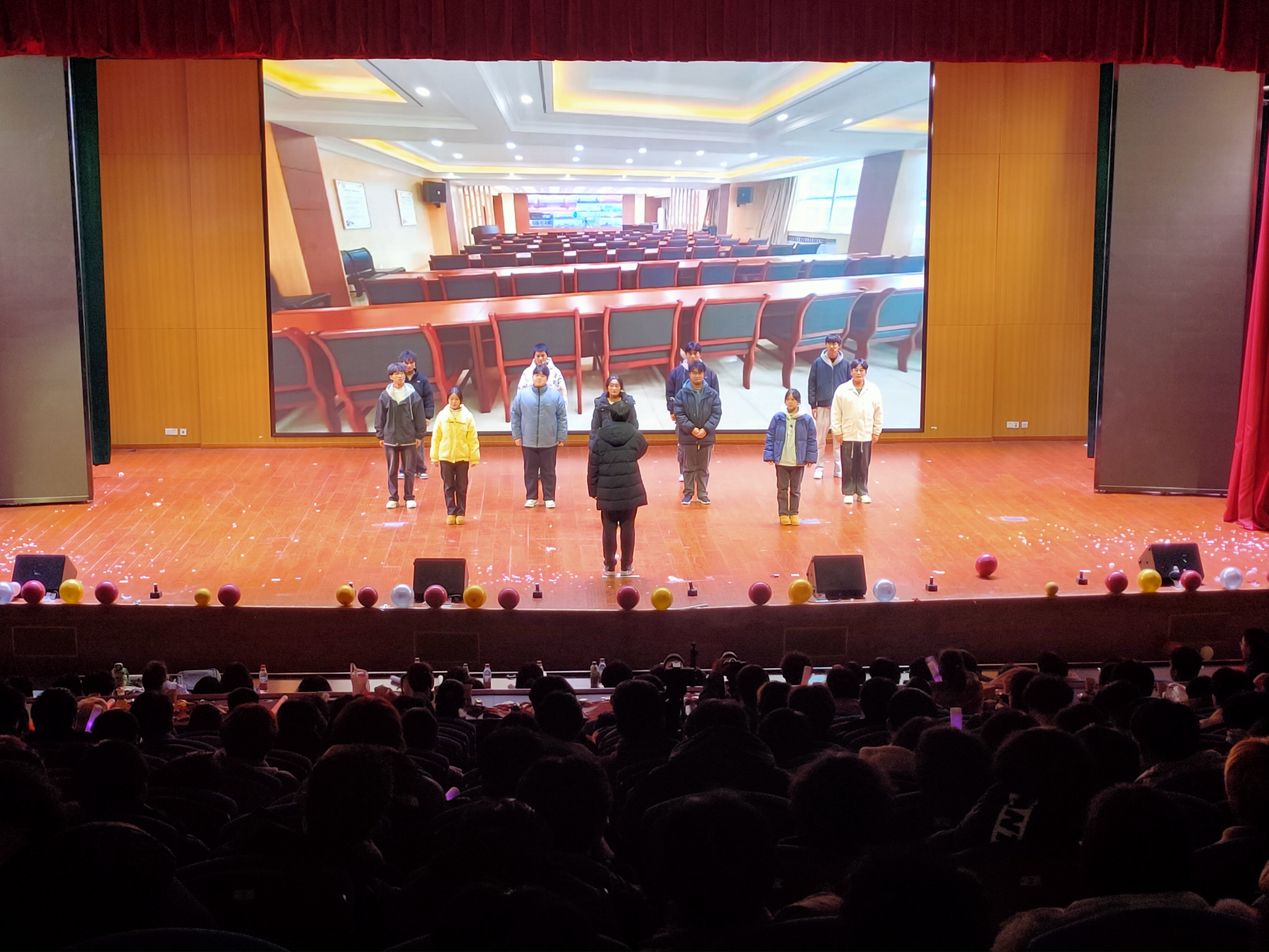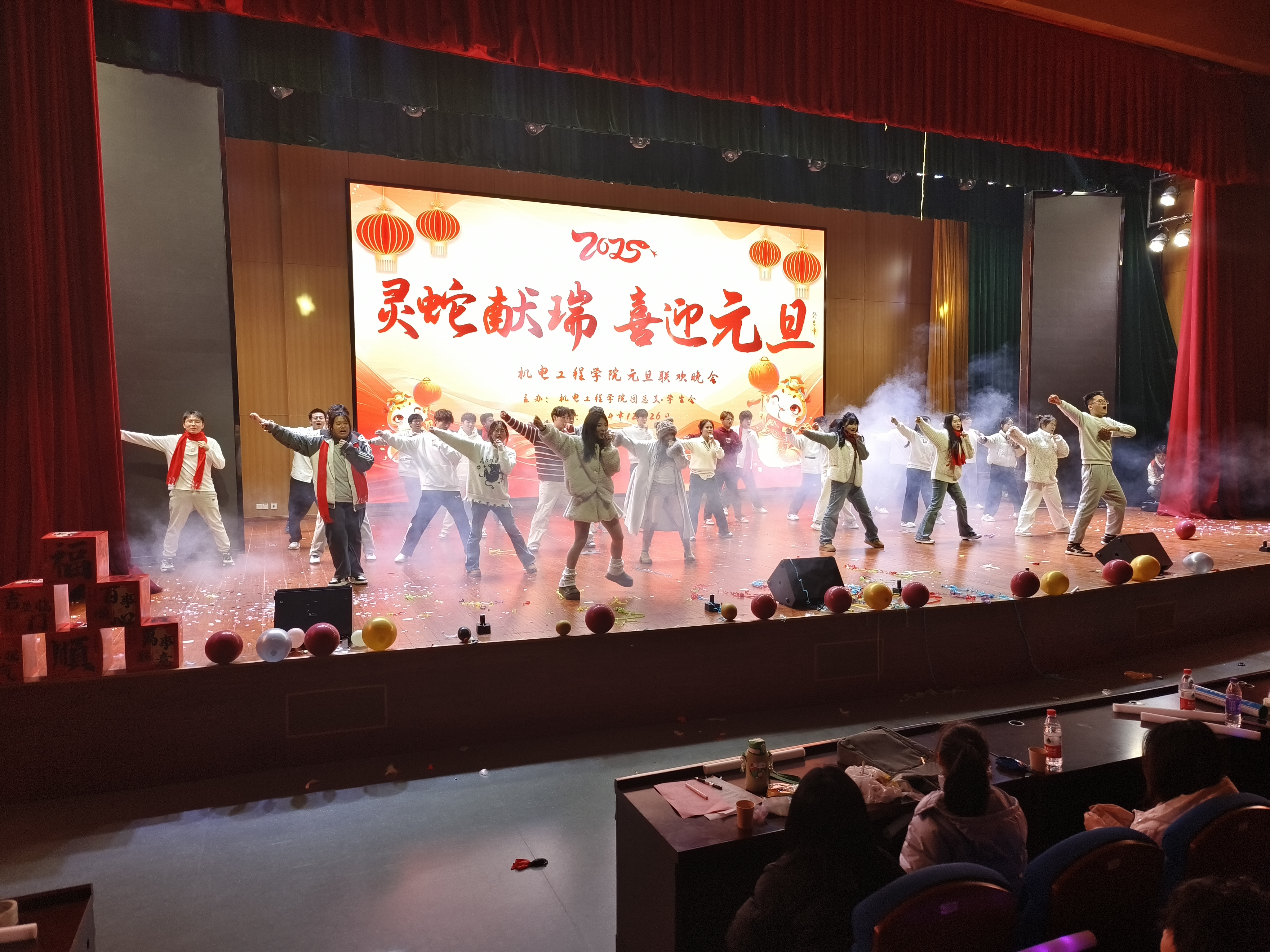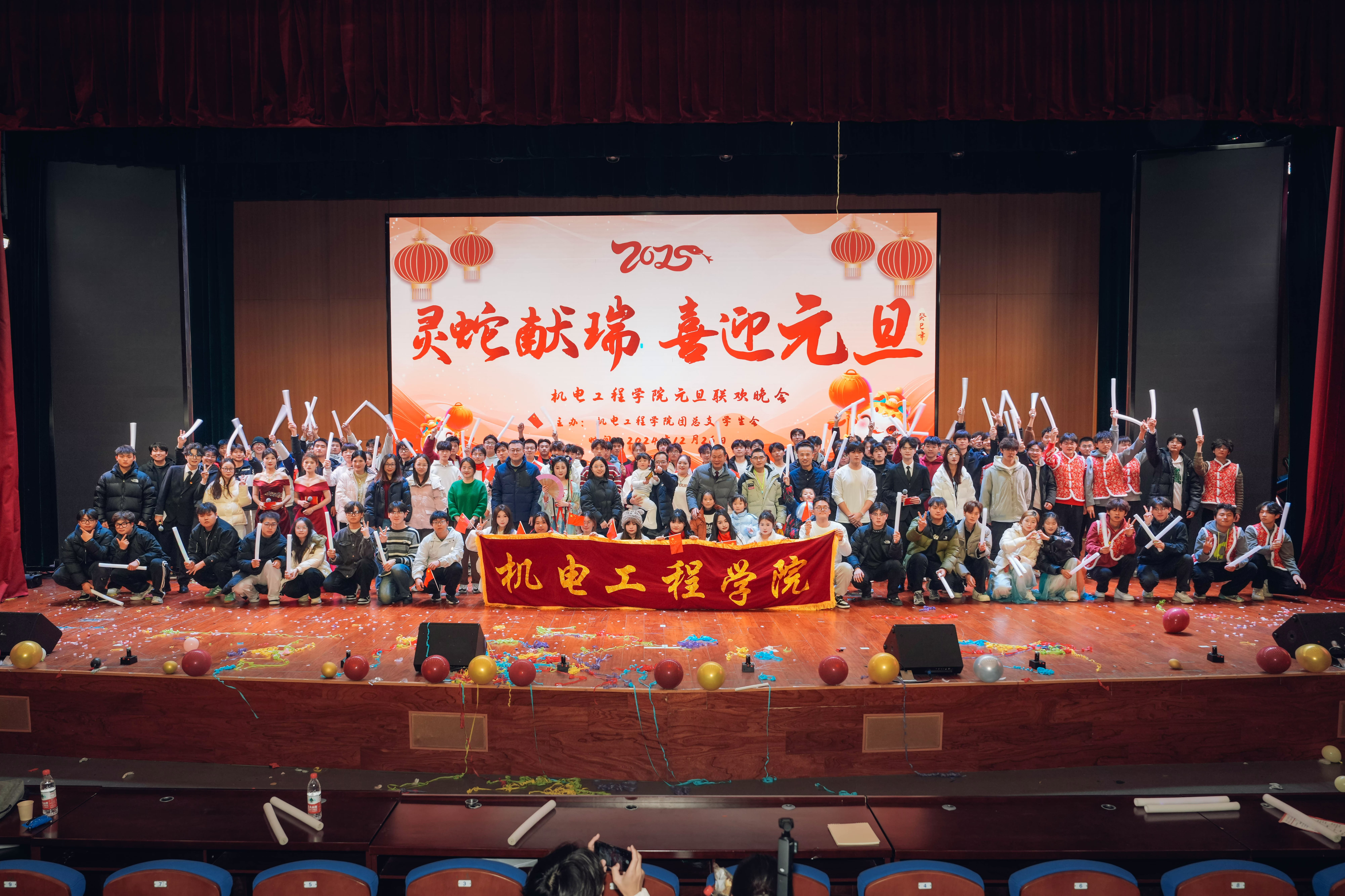 一元复始、万象更新。为弘扬中华优秀传统文化,营造文明和谐、喜庆祥和的新年气氛,充分展现青年学子风采,12月26日晚,艾弗森贝博ballbet官网在汇心湖校区大学生活动中心二楼报告厅举办“祥蛇献瑞 喜迎元旦”2025年元旦迎新晚会,师生们欢聚一堂,共同迎接新一年的到来。学院党政领导班子、全体专兼职辅导员、教师代表、学校和其他二级学院学生会代表以及400余名新生共同观看演出。