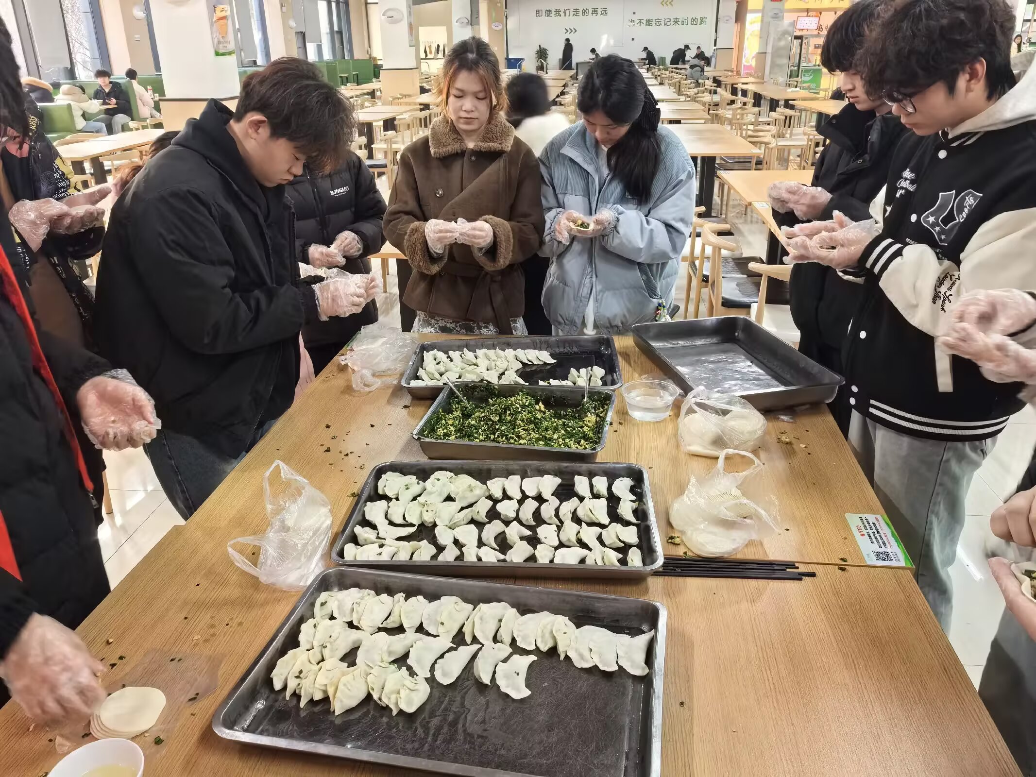 饺香四溢,情暖冬至。12月21日下午,学生食堂一楼洋溢着热闹温馨的气氛。同学们分组协作,揉面、擀皮、包馅,在志愿者们指导下亲手制作饺子。活动还创新融入冰糖葫芦制作环节,熬糖、穿果、挂浆,红亮晶莹的糖葫芦与白白胖胖的饺子相映成趣。大家边做边聊,互帮互助,最后共同品尝劳动成果,在美食与欢笑中共度“冬至大如年”的团圆时光。