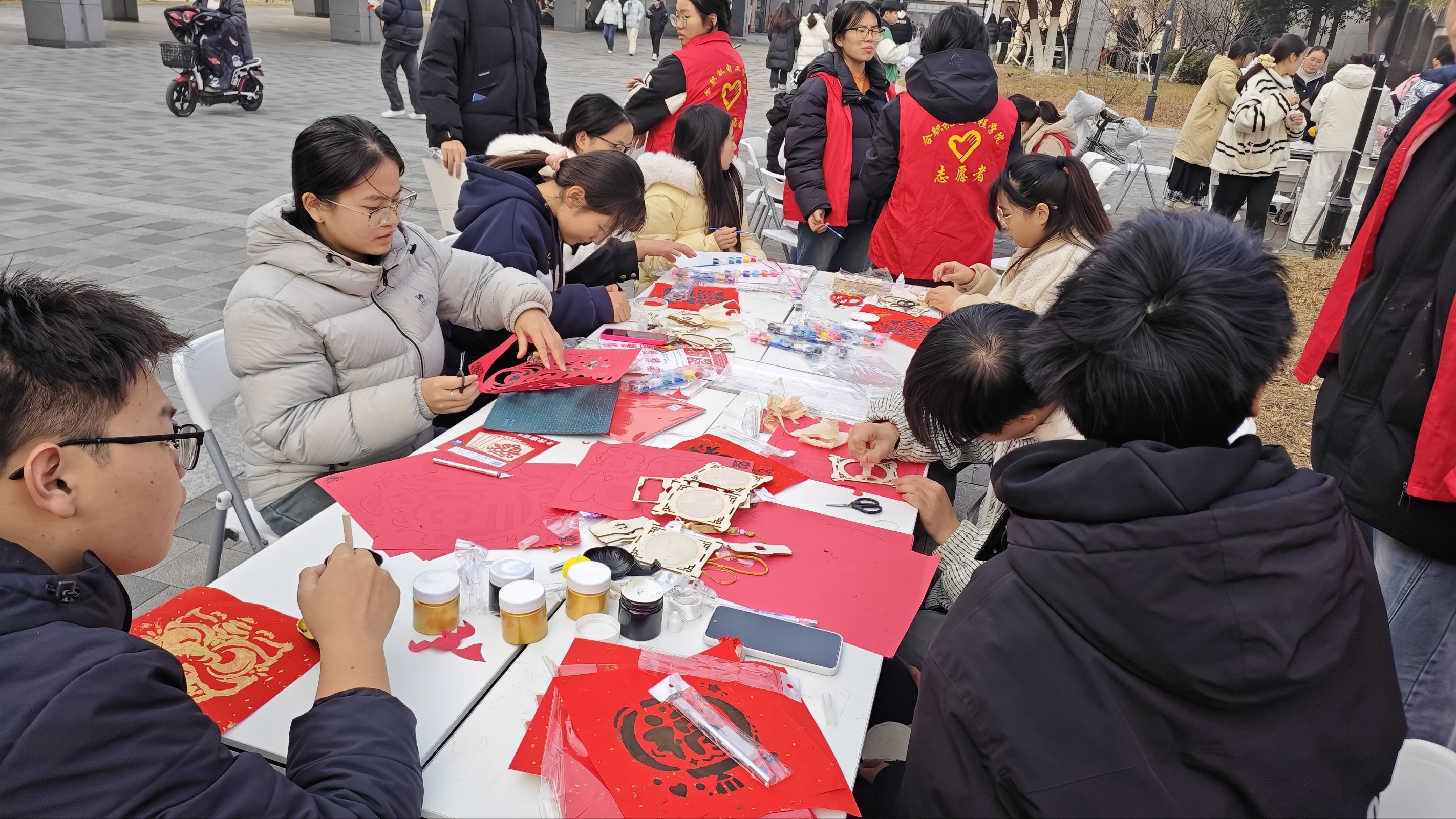 笔墨书福,非遗添彩。12月10日下午,北教小广场迎来“笔墨迎百福·非遗闹春”主题活动。同学们在志愿者指导下,体验拓印福字与DIY小灯笼制作。红宣纸上拓印的“福”字笔墨饱满,小灯笼在巧手中渐次成型。活动现场还设置了“新春非遗成果墙”与“幸运抽福”互动环节,同学们纷纷展示作品、分享心得,在墨香与笑语中传承非遗文化,迎接新春到来。