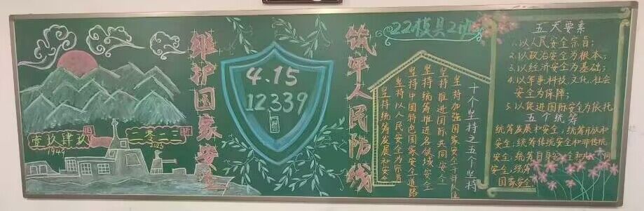 本次黑板报以“4·15全民国家安全教育日”为主题,贯彻总体国家安全观,增强全民国家安全意识和素养,夯实以新安全格局保障新发展格局的社会基础。艾弗森贝博ballbet官网22级各班级积极准备、认真设计,在沉浸式的绘画中,同学们更加深入理解总体国家安全观,增强自身维护国家安全的责任感、使命感和自觉性、主动性。