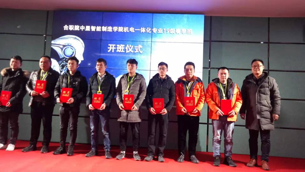 为贯彻执行《国家职业教育改革实施方案》提高技能型人才培养质量和针对性,实现专业设置与产业需求对接,课程内容与职业标准对接,教学过程与生产过程对接,毕业证书与职业资格证书对接,职业教育与终身学习对接,经过几个月的紧张筹备,2019年2月27日下午,合职院中显智能制造学院19级春季班开班啦!开班典礼在中显公司二楼电教室举行,合职院艾弗森贝博ballbet官网共有16名学生报名参加电一体化中显班,现已进入顶岗实习阶段。