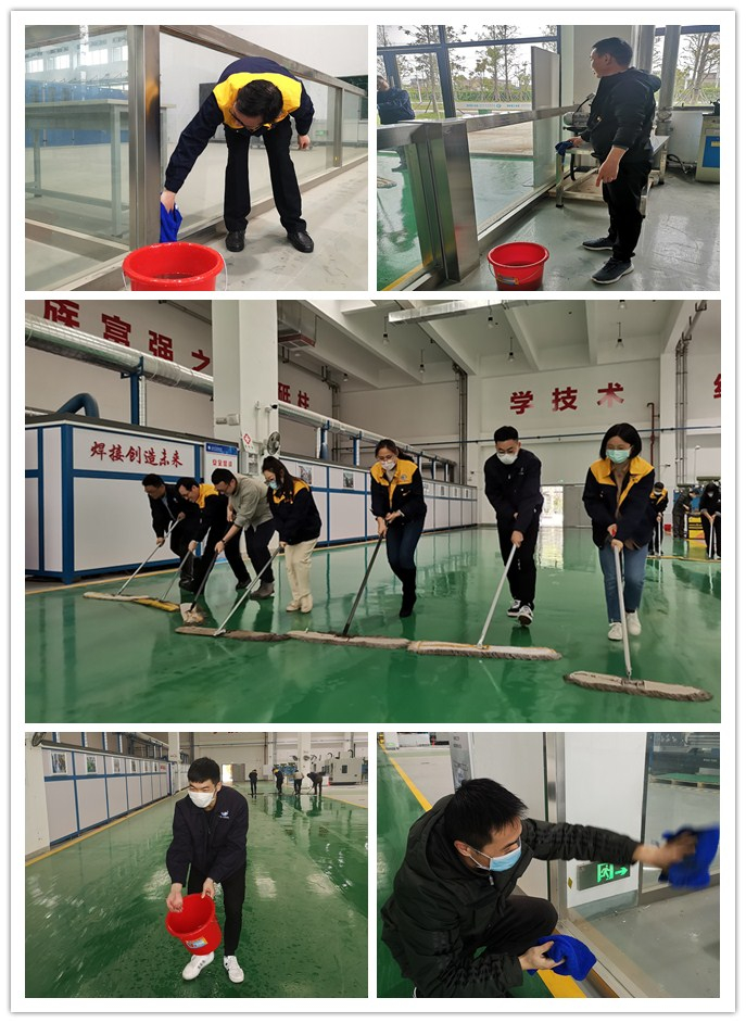 下午,在学院统一号召下,院领导班子带领学院在校教师对机电楼一楼大车间开展了卫生清洁活动。教师们身穿工作服,自带拖把、抹布等工具,化身“最美保洁员”,对车间出入口、地面、实训区、桌椅、门窗、器械设备等区域进行了认真打扫。经过二个多小时的辛苦劳动,在老师们同心协力下的大车间焕然一新。院领导班子表示这样的卫生清扫活动后期还会继续开展,旨在营造一个舒适、安全的环境。这次义务劳动也是艾弗森贝博ballbet官网党员教师践行“六个一次” 品牌活动 (当一次志愿者、深入一次宿舍、进行一次谈心谈话、做一次有关学生的调查研究、解决一次学生的实习困难、参加一次学生活动)的实际表现,充分体现了党员老师的先锋模范带头作用。