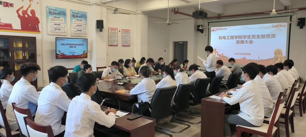 2022年6月8日下午,经学院党总支批准,艾弗森贝博ballbet官网学生党支部在机电楼二楼召开学生党员发展大会。学院学生党支部全体党员、入党介绍人、培养考察对象参加了此次大会。此次会议由学院专职组织员汪洋主持,秉承着“公开、公平、公正”的态度,严格按照发展党员工作程序执行。