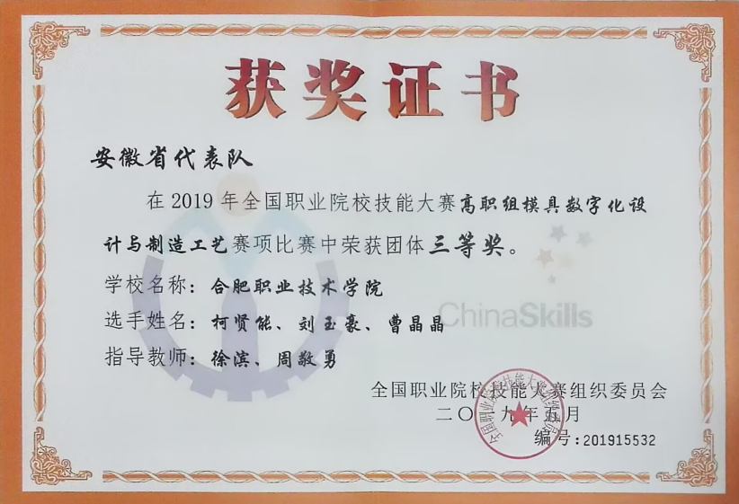 【专业建设成果】最近五年,模具设计与制造专业已建成省级精品课程4项,省级教科研项目30项。专业学生在全国技能大赛中获得一等奖1项,获得二等奖2项,三等奖1项;在安徽省职业技能大赛中获得一等奖6项,二等奖10项,三等奖10项。
