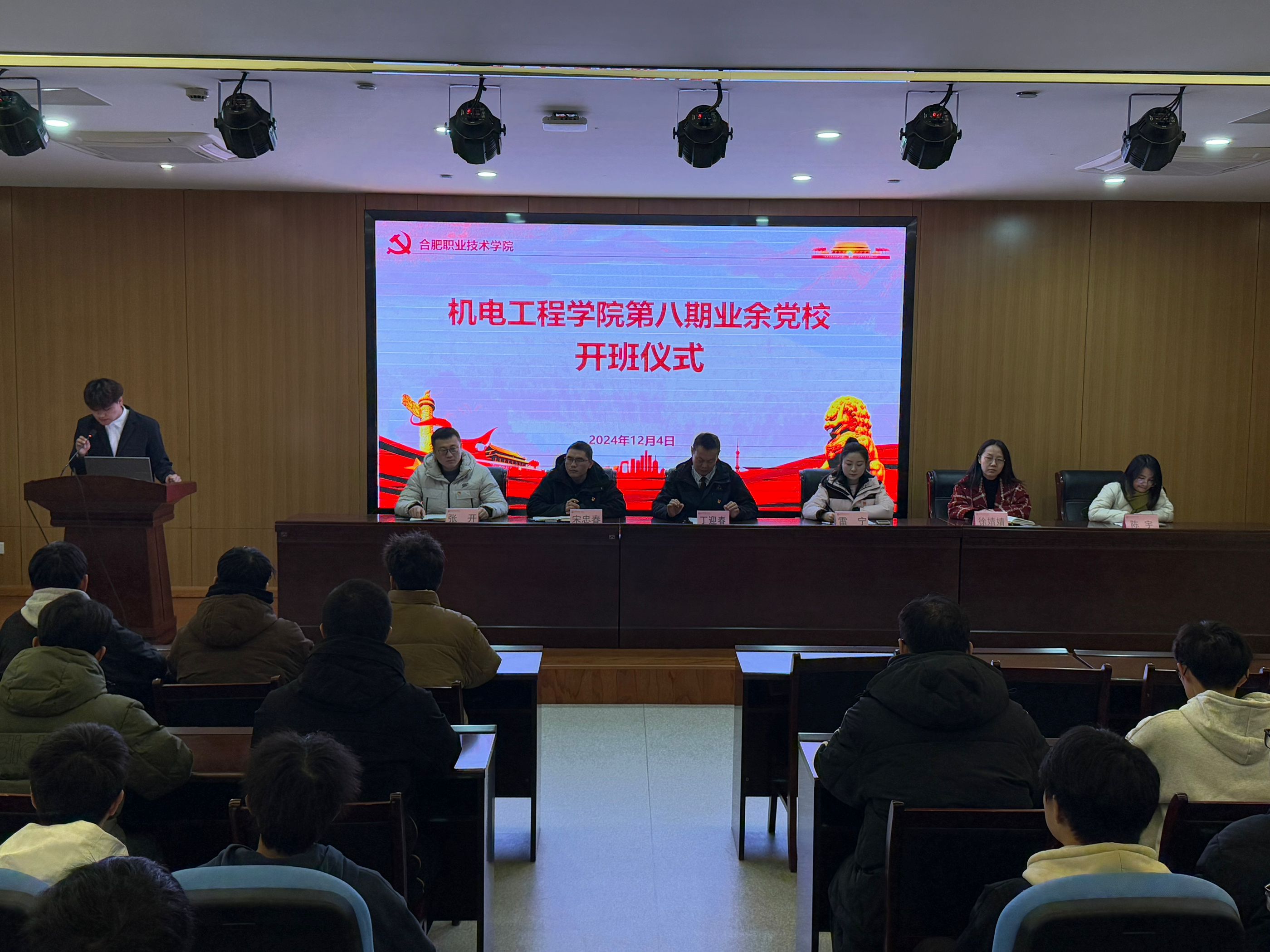 12月4日,艾弗森贝博ballbet官网第八期业余党校开班仪式在汇心湖校区图书馆一楼报告厅顺利进行。学院党总支副书记(主持工作)丁迎春、党总支副书记宋忠春,专职组织员雷宁、各党支部书记及第八期业余党校学员参加开班仪式。