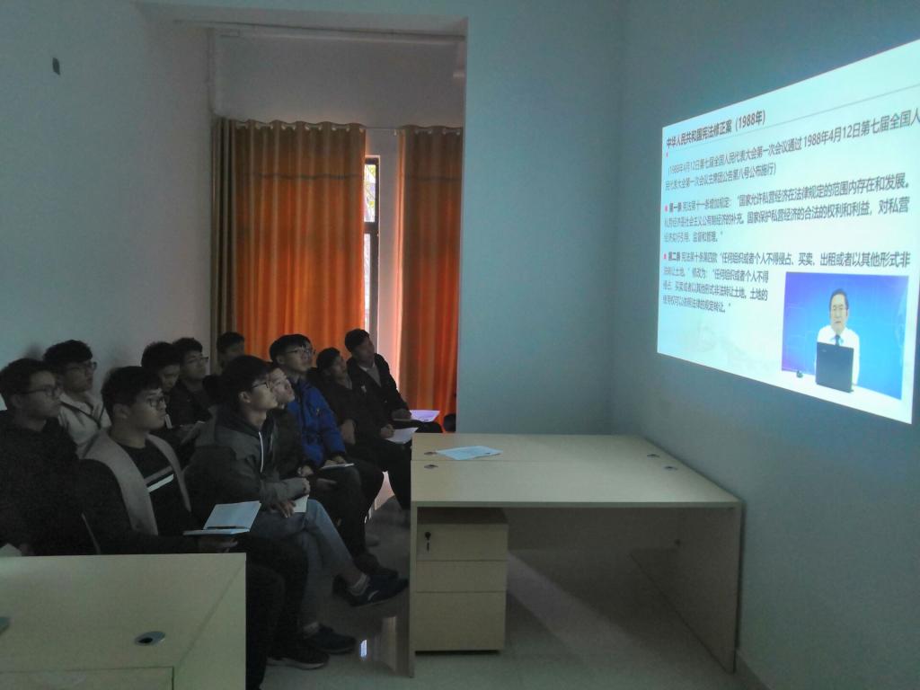 学习宪法,溯本求源。12月6日下午,由艾弗森贝博ballbet官网大学生自我管理委员会承办的“结合十九大精神学习宪法修正案要义”的教育活动在学生公寓1号楼107宿舍开展,全体机电学院班长参与学习活动。活动以网络视屏教学的模式展开,各班班长通过学习由中科院法学研究所副所长莫纪宏主讲的《宪法修正案要义》,不仅了解了最新的宪法修正案内容,更深刻理解了宪法修正案的内涵和意义,为班长在各班进一步宣扬宪法精神把住了方向,握住了核心,拿住了要义,为更好的完成“学宪在班级、学宪在寝室、学宪在日常、学宪在经常”的任务奠定了理论基础。