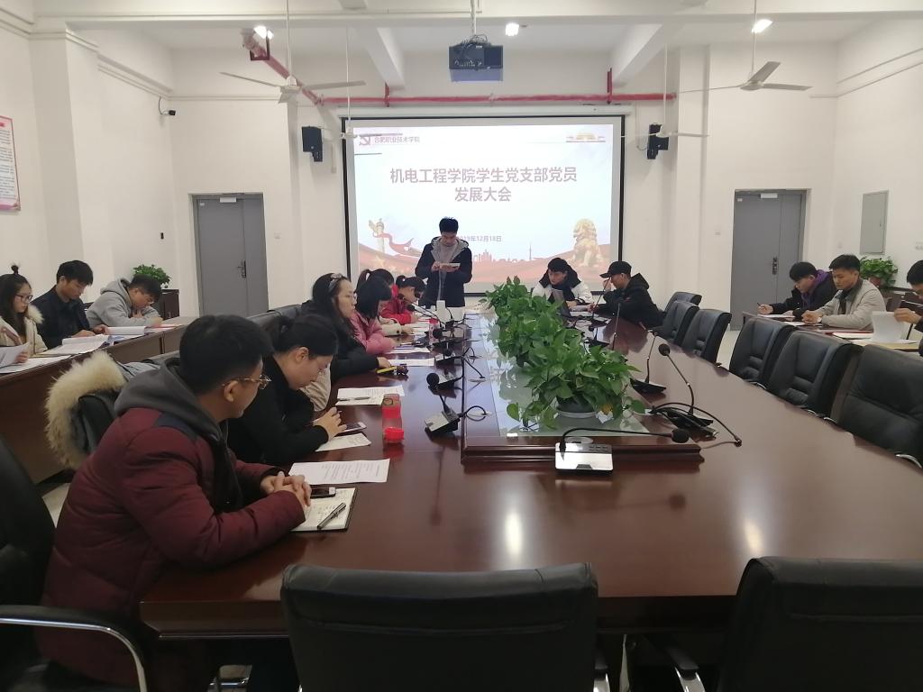 1218日下午艾弗森贝博ballbet官网学生党支部在机电楼二楼会议室召开党员发展及转正大会,学生党支部全体党员、培养联系人、6名预备党员及9名发展对象参加了会议。会议由学生党支部书记朱何萍主持。