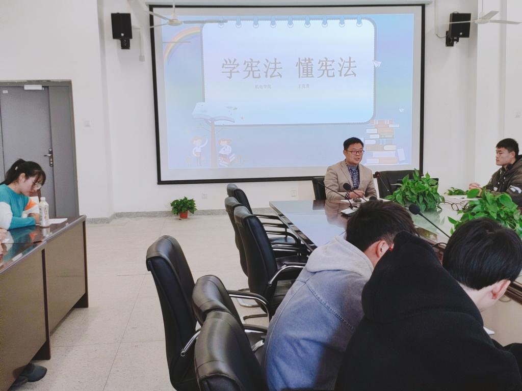 开班仪式结束后,王克勇书记给全体学员上了第一堂党课《学宪法,懂宪法》。今年12月4日是我国第六个国家宪法日。王克勇书记深入地向学员们介绍了我国宪法颁布及修订的过程,讲述宪法与普通法律的不同,让大家了解到每年的12月4日,不仅是全国法制宣传日,更是宪法宣传日。他号召所有入党积极分子要始终以革命先辈为榜样,时刻牢记全心全意为人民服务的宗旨,团结一致,积极投身到学院的建设和发展之中。党课最后,王克勇书记还对学员们提出了四点要求:一要遵规守纪,服从安排;二要以身作则,为同学们做好表率;三要加强身边同学对党情国情的认识与了解;四要处理好学习与生活杂事的关系。