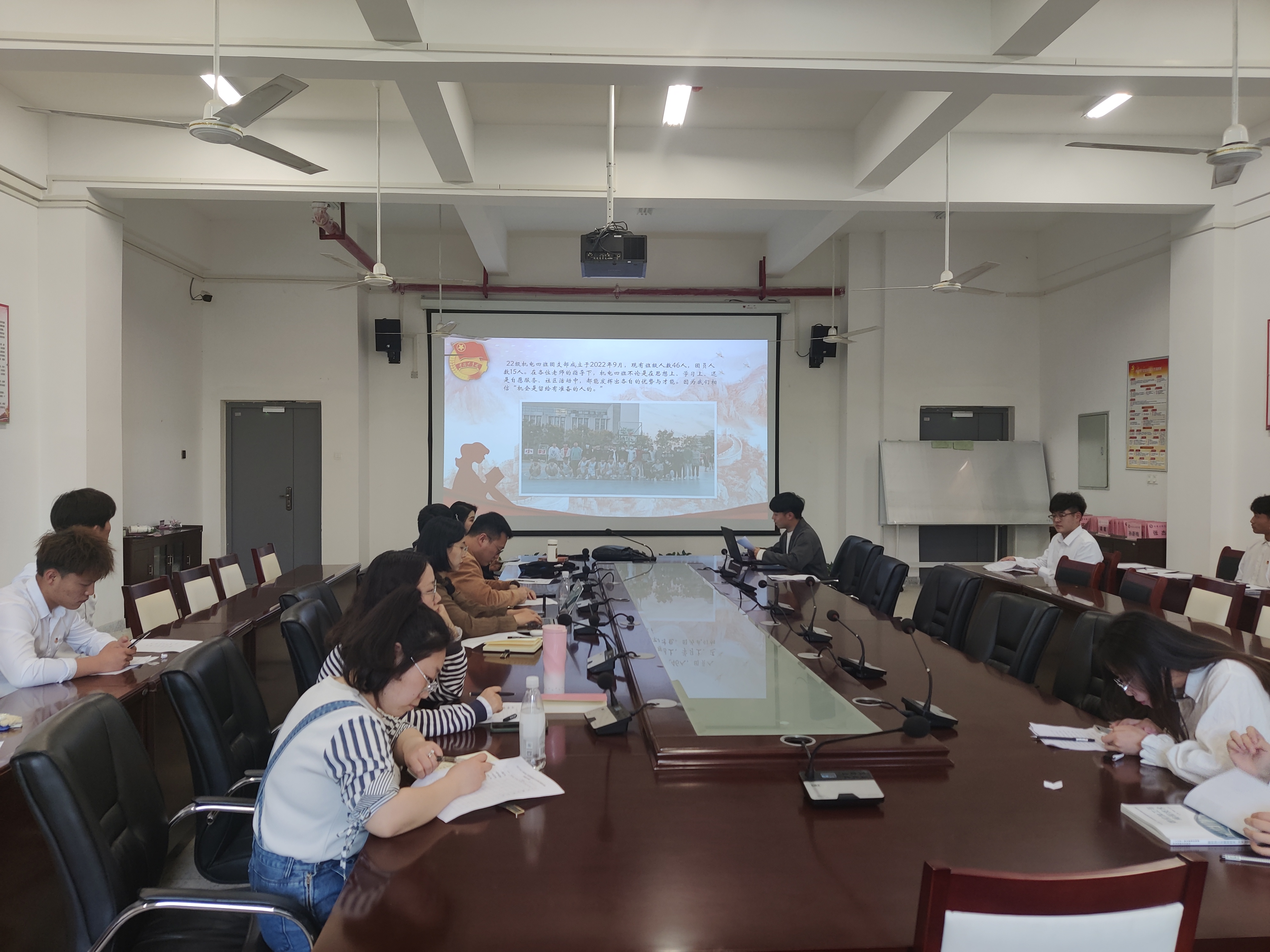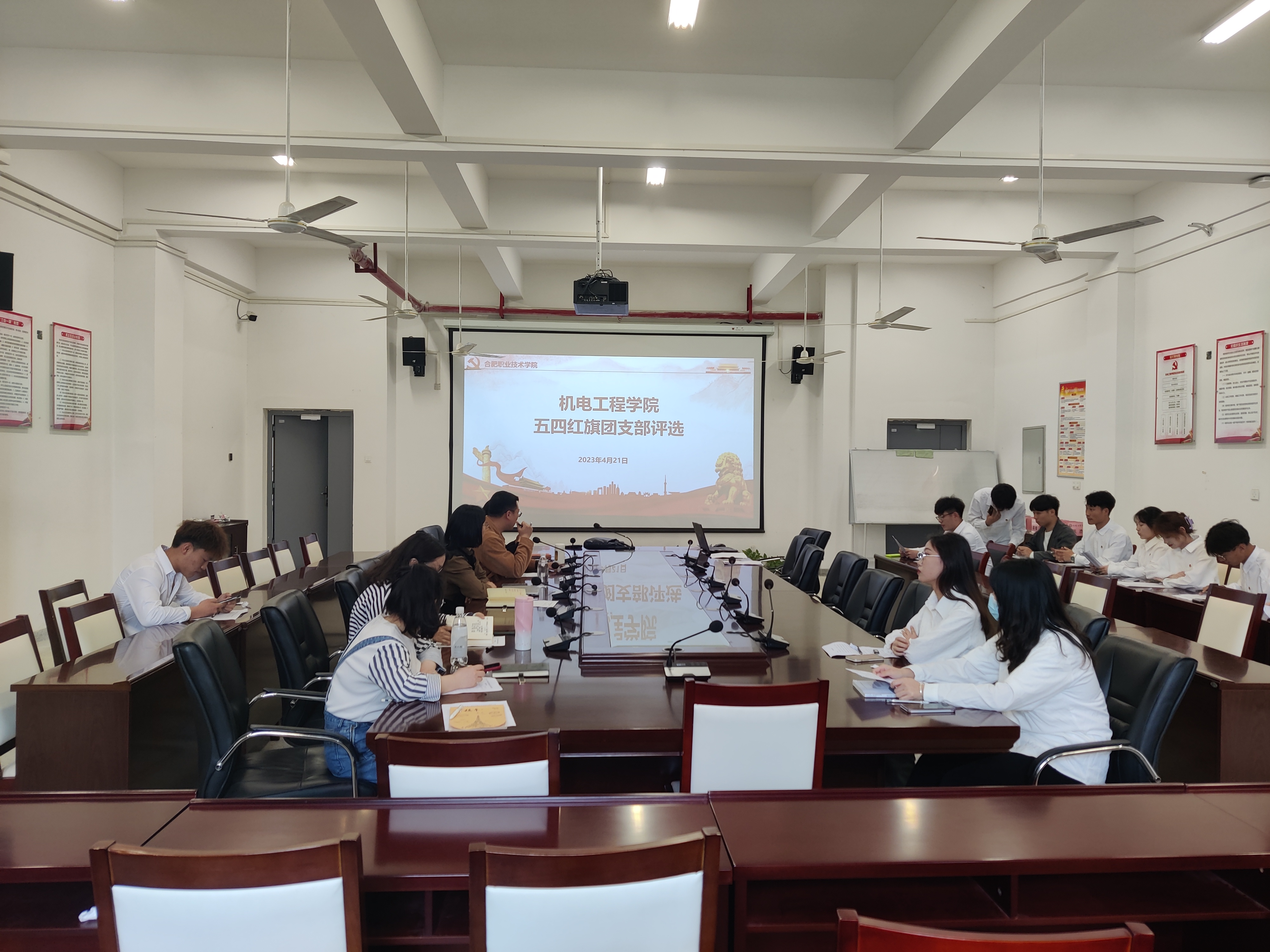 为全面推进团的基层组织建设、活跃基层团组织工作,充分发挥先进典型示范作用,进一步加强青年学生思想政治引领,4月21日下午,艾弗森贝博ballbet官网2022年度“五四红旗团支部”评比活动于机电楼二楼召开。