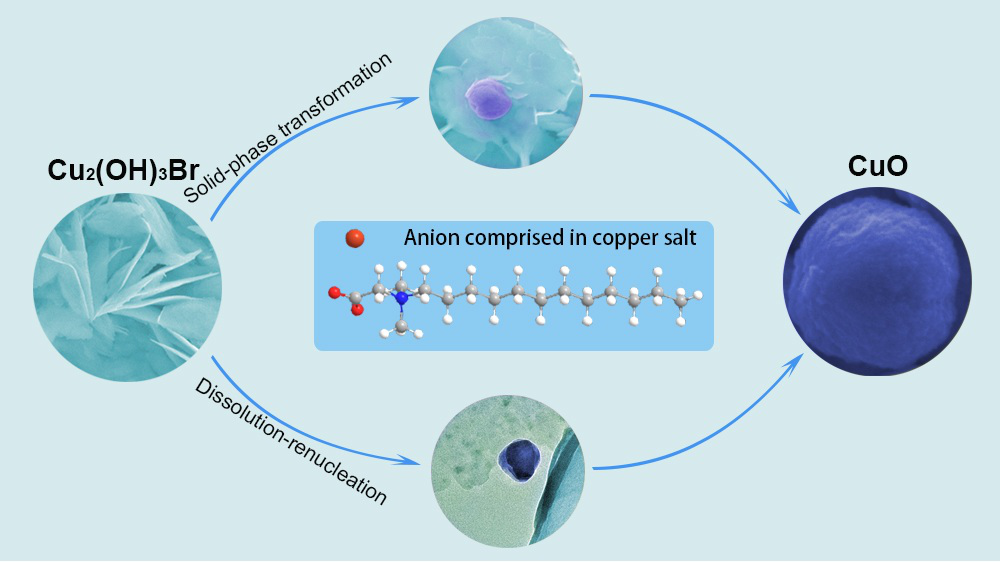 纳米材料特别是氧化物纳米材料对储能材料电极合成有着重要意义。日前ballbet官网博士后研究团队在氢氧化铜晶型转变为氧化铜材料方向上获得突破,所得成果以SCI论文(Stepwise Growth of CuO via Transformation of Cu2(OH)3Br Intermediate in Aqueous Solution of Long-Alkyl-Chain Copper Salt)在中科院晶体1区(202001月“去四唯”版)杂志CRYSTAL GROWTH & DESIGN20205月刊)上发表