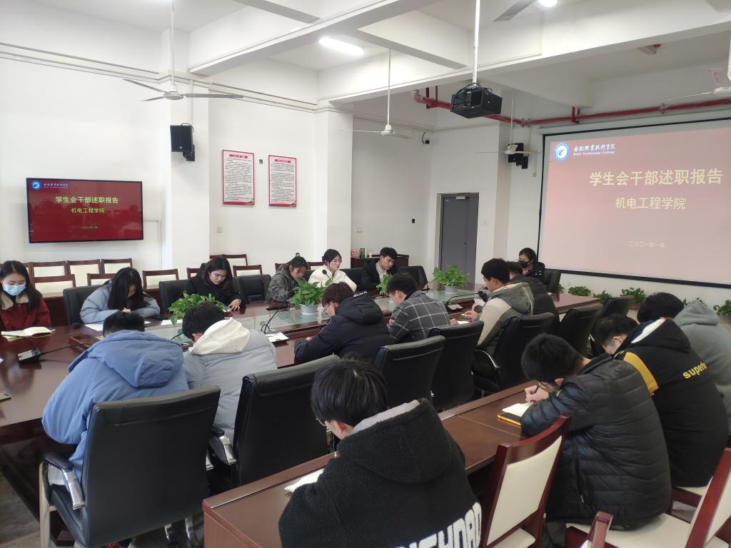 1月10日下午,艾弗森贝博ballbet官网在机电楼二楼会议室召开2020年度学生干部述职报告会。学生会主席团、各部门主要负责人以及学生代表参加会议。会议由团总支书记朱何萍老师主持。