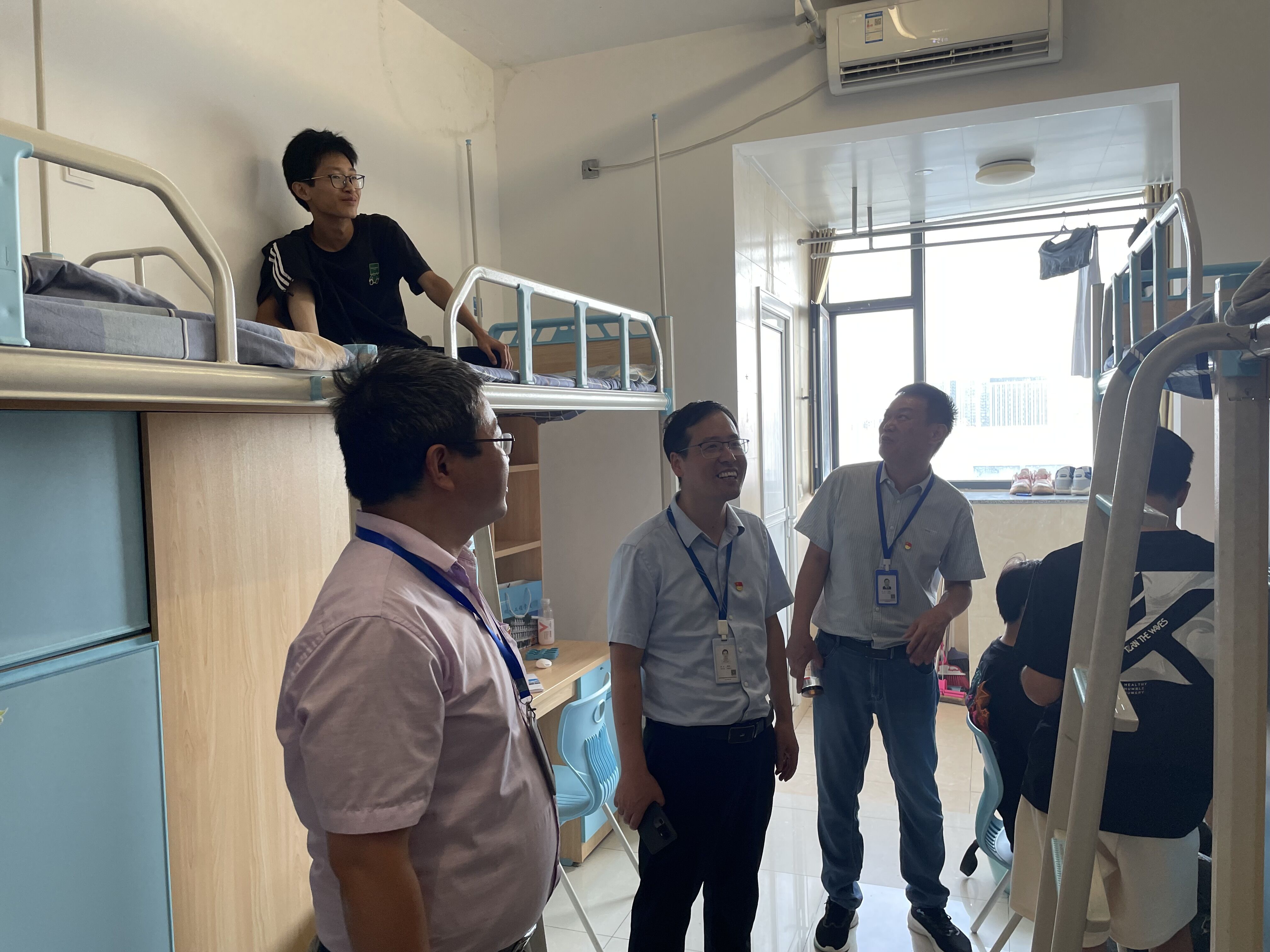 新生报到期间,校党委书记王杰才,校党委副书记金飞燕,校党委委员、纪委书记何军,校党委委员、副校长范家茂等学校领导和相关部门负责人来到学院迎新点进行工作指导并对学院迎新工作给予肯定。随后学院党政负责人、2023级各班班主任前往学生宿舍探望新生,积极了解新生们的住宿情况,并与其展开面对面交流。在交谈中,学院领导表达了对新生的关怀与期待,叮嘱新生们要尽快融入大学的新环境,在未来的时光中努力学习,积极向上,早日成为适应社会发展的技术人才。