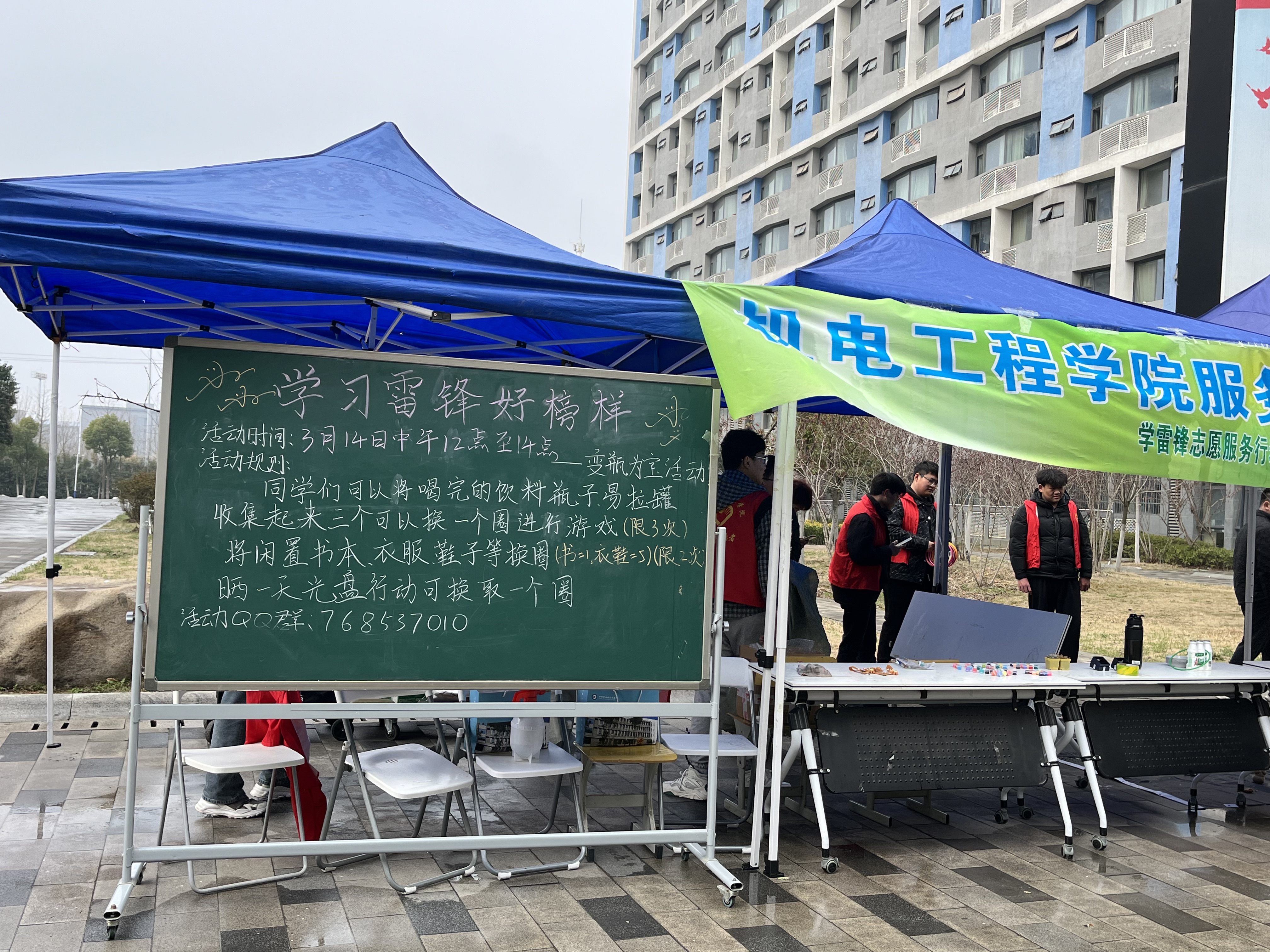 三月春风处处暖,雷锋精神伴我行。为响应学习雷锋的号召,艾弗森贝博ballbet官网学生会特别策划了学雷锋志愿服务月系列活动,此次活动以“雷锋精神伴我行 变瓶为宝树新风”为主题于3月13日—15日下午在汇心湖校区第一食堂门前举办。活动以校园垃圾变废品为宝,把收集的空瓶子和易拉罐等废品,通过分类回收,实现废物再利用。通过创意与实践,既是一种环保行为,也是对勤俭节约精神的倡导,让同学们深刻体验到雷锋精神的内涵与价值。