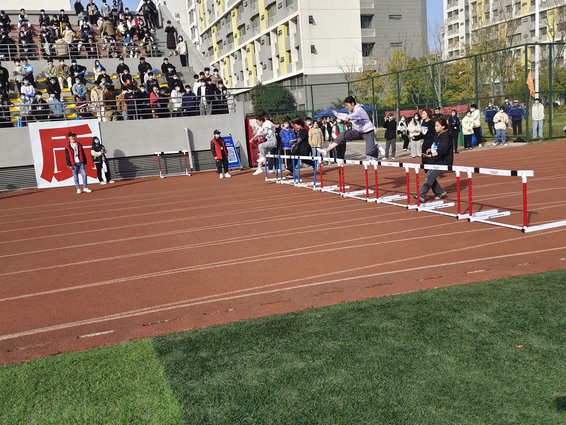 除了孤身作战,当然还有团队合作。接力赛传递的不仅是手中的接力棒,还有同学、团队之间的默契和信任,在男子和女子4*100米两组接力赛中,机电学子用他们的精彩表现展现出了同学们之间的团结和友爱,同时赛场上的他们也表现出了对体育竞技的热情。运动会在一阵阵的加油声和掌声中达到沸点,同学们本着“友谊第一,比赛第二”的理念参加比赛,赛出了风格,赛出了水平。