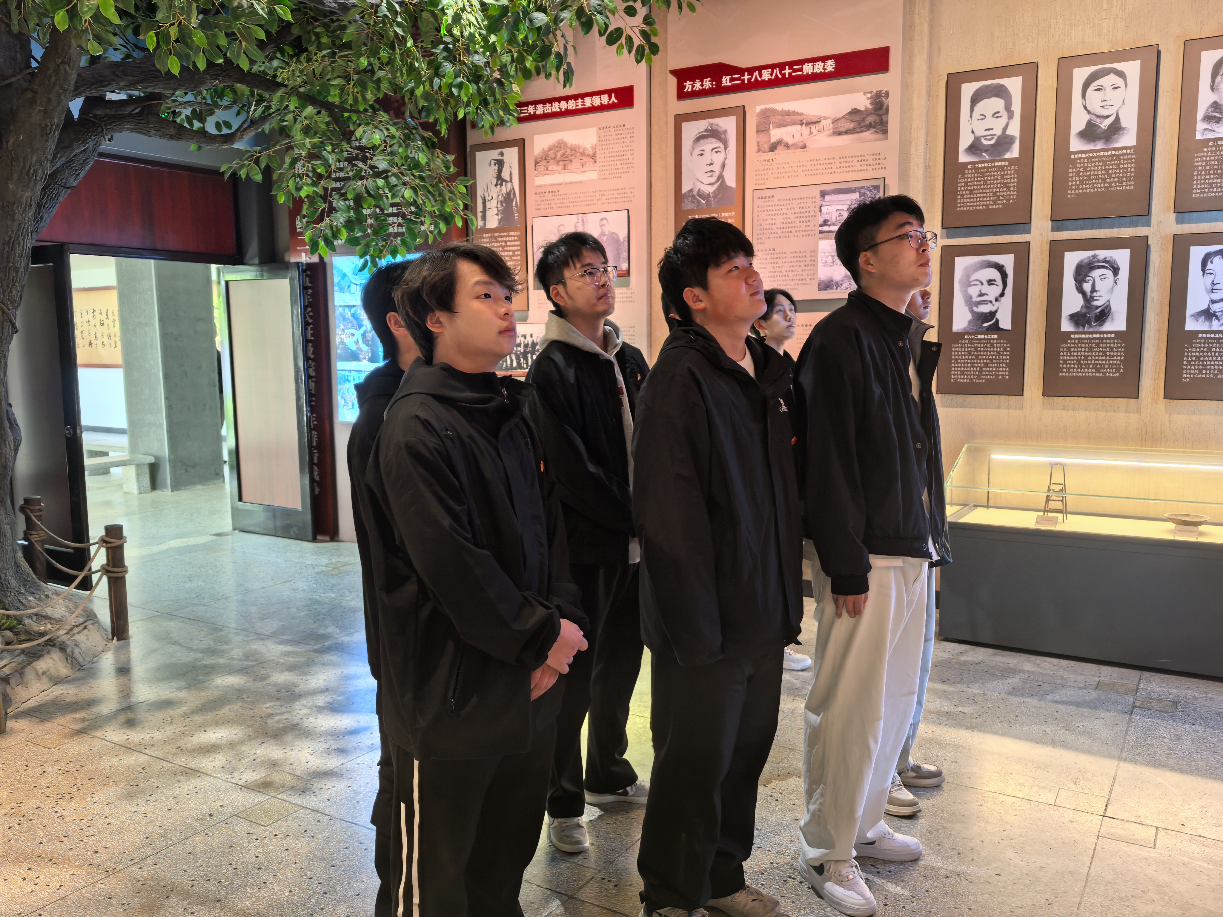 祭扫仪式结束后,师生们一同步入安徽革命烈士事迹陈列馆。馆内,师生们仔细观看展厅内的历史图解、战役沙盘及文物展陈,通过文字介绍、老照片和实物档案,深入了解江淮大地革命先烈们可歌可泣的英雄事迹。在“地覆天翻”“艰辛探索”“改革开放”等主题展区前,大家驻足良久,或低声交流感悟。一幅幅生动的战斗示意图、一封封泛黄的家书、一件件斑驳的军装,无声诉说着先烈们的牺牲与坚守,令在场师生深受震撼。